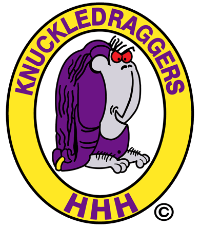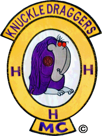 In late 2000, 4 friends who enjoyed the Hash House Harriers and motorcycles got together in Corpus Christi, Texas with an idea to start riding together on a regular basis. Over the coming months, the idea caught on among other Texas friends who were also Hash House Harriers and by mid 2001 the now-larger group approached the Texas Confederation of Clubs in Corpus Christi for guidance on becoming a chartered Motorcycle Club.The local leadership of the Texas Confederation of Clubs (CoC) was very helpful in establishing the Knuckledraggers Hash House Harriers (Knuckledraggers H3) as a chartered Motorcycle Club. Owing to the the Knuckledraggers hope to someday ride outside of Texas, the CoC recommended strongly that the Knuckledraggers charter through the American Motorcyclist Association. The Knuckledraggers enthusiastically accepted this suggestion and by late 2001 the Knuckledraggers H3 MC was established as chartered Motorcycle Club. During this period, the Knuckledraggers H3 MC received AMA Charter #2268 in order to fulfill their agreement with the CoC. The local CoC acknowledged the design below as the official patch or "Colors" of the Knuckledraggers H3 MC.